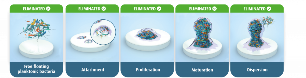 As we’ve seen, biofilms can form anytime and anywhere, but understanding each stage of biofilm formation enables you to quickly and easily eliminate them before they become established.